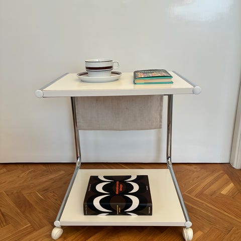 2 sängbord i stålrör med rökfärgad glasskiva retro vintage