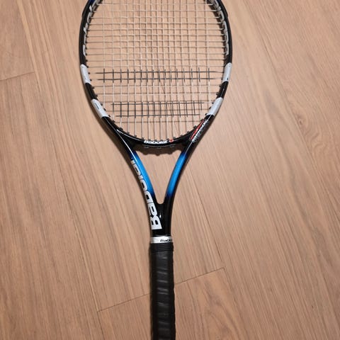 Babolat Drive tennisracket i blått. Racketen är utrustad med Woofer-teknologi enligt märkning på ramen. Racketet är strängat och klart för användning. Ny linda för handtaget rekommenderas.