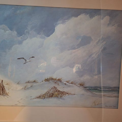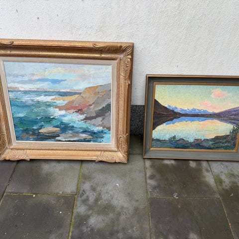 Inramade landskapsmotiv tavlor med guldfärgad ram