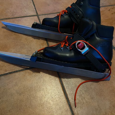 Långfärdsskridskor från Lundhags med justerbara remmar. Längd: 44 cm. Du kan använda vanliga kängor/skor. Fästen med spännen som gör att de kan anpassas efter olika skostorlekar. Passar upp till 42 utan problem.