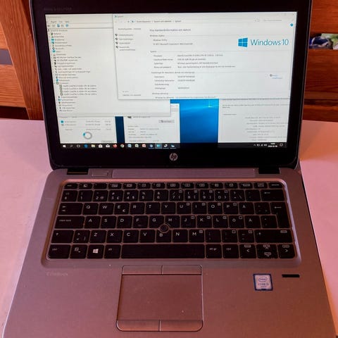 HP bärbar dator med Intel Core i5-processor. Datorn har inbyggt tangentbord och pekplatta samt skärm i standardstorlek för kontorslaptop. Flera nätadaptrar och en HP-dockningsstation ingår, vilket gör det möjligt att ansluta extra skärmar och tillbehör via dockan. Lämplig för vardagligt kontorsarbete, studier och internetanvändning.