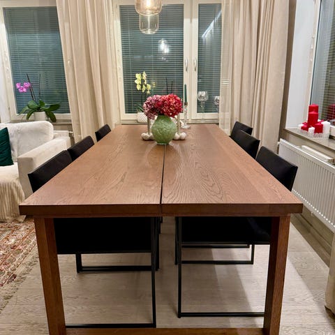 Säljer vårt matbord. Det behandlades för ett år sedan men har en del skavanker. Säljes pga flytt