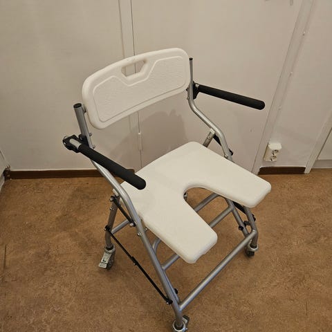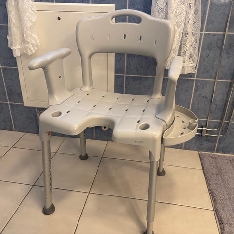 Denna duschstol är ett funktionellt och säkert hjälpmedel som ger extra komfort och stöd vid dusch. Den stabila konstruktionen och de praktiska handtagen gör den idealisk för personer med nedsatt rörlighet som vill känna trygghet och frihet i badrummet. Ryggstödet ger behagligt stöd under användning och kan enkelt tas av och sättas på vid behov.