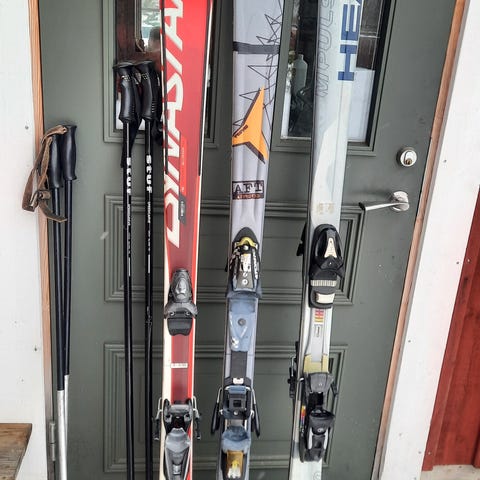 Komplett skidpaket med skidor, pjäxor och stavar.