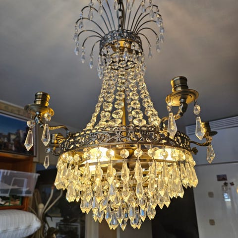 Äkta äldre kristallkrona sekelskifte I bra skick sparsamt använt.