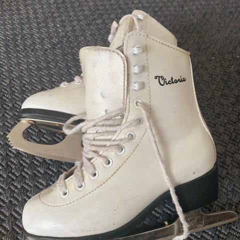 Nancy Black Dragon skridskor för barn i storlek 32. Vita konståkningsliknande skridskor med snörning framtill och stålskena. Passar för allmän åkning på is, exempelvis i ishall eller utomhus på plogad is. Modellen är avsedd för barn och ger stöd runt fot och ankel vid åkning.