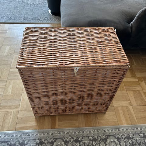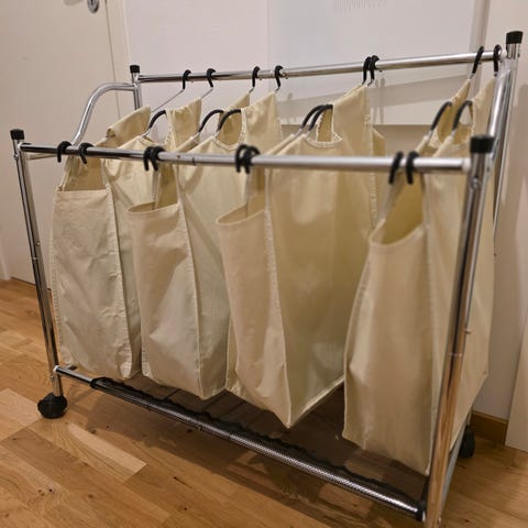 Tvättkorg på hjul, volym 80 l. Dragkedja på locket. Svart tyg avtagbart för tvätt, Ren och fräsch.