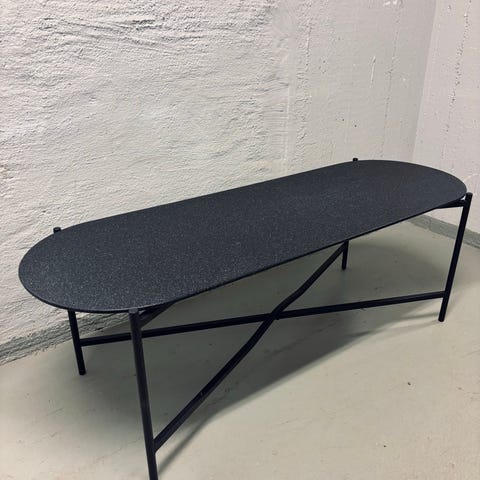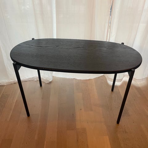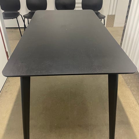 Säljer ett snyggt och modernt matbord i svart färg med avlång, mjukt rundad form. Bordet passar perfekt i kök eller matrum och rymmer flera personer.