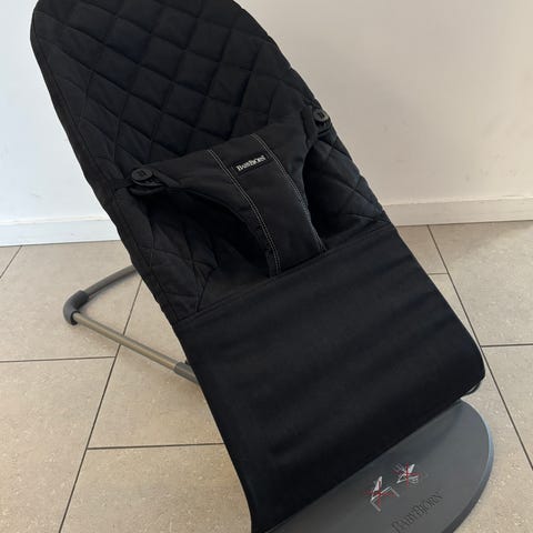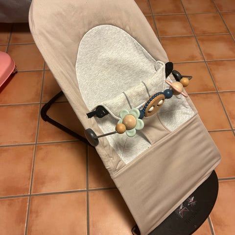 Babysitter med lekbåge från Babybjörn. Använd men fortfarande i bra skick. Inga skador eller fläckar på tyget. Tyget är tvättat inför försäljning. Katt finns i hemmet.