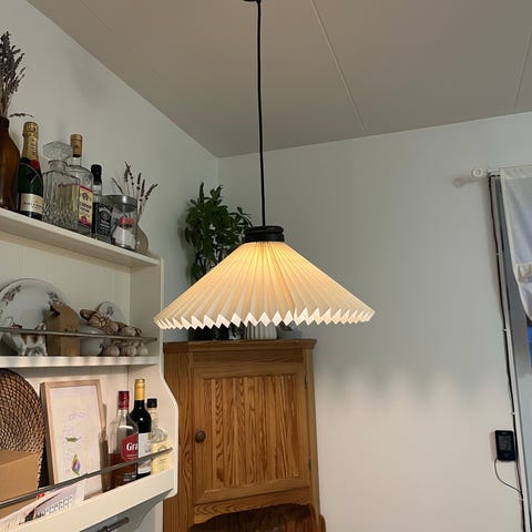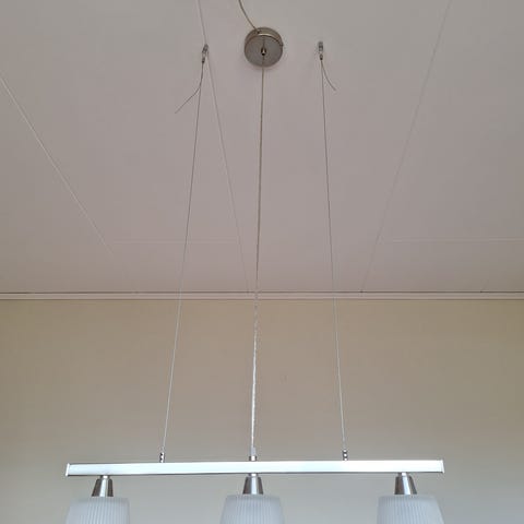 Taklampa, inga fel. Går att dimma ljuset genom att dra lätt i ena änden av lampan.