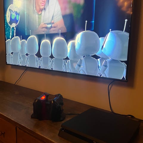 Sony Playstation 4 spelkonsol med 500 GB lagringsutrymme i svart färg. Konsolen är ansluten till TV och visar lagringsinformation samt installerad systemprogramvara på bilderna. En trådlös handkontroll (DualShock 4) syns på bilden. I fodralet ligger två spel på skiva: Call of Duty två olika. Lämplig för spel, streaming och andra PS4-funktioner. Alla delar som syns på bilderna ingår.
