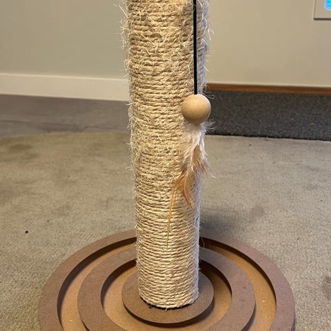 Katter kan ha dåligt humör utan leksaker och skada möbler bara för skojs skull. En professionell design med robusta däck är lämplig för alla vanliga golv, inklusive mattor.