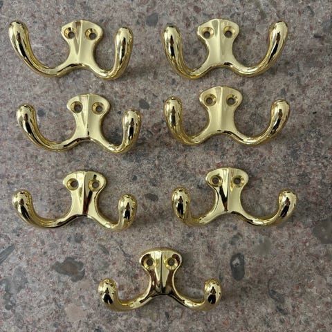 Väggkrok i polerad mässing. Kulformad knopp är massivt mässigt (knoppens vikt är 900gr)den skruvas fast på krokens gängade ände. Monteras på vägg eller trälist med fyra skruvar genom den rektangulära monteringsplattan. Passar för upphängning av exempelvis kläder eller andra föremål.