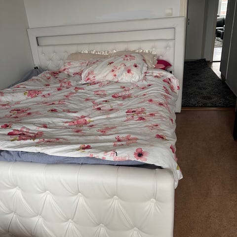 säng+ 2 sängbord, stor garderob+ smink bord och madrass. kommer från rökfri och djurfri hem. knappt använd är som ny.