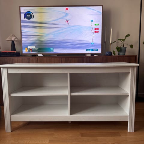 TV-bänk från ikea med bra förvarningmöjligheter.