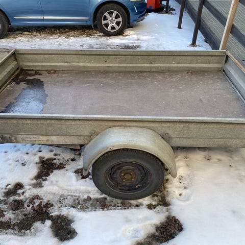 Flaket är täckt med kapell och konstruktionen är rejäl och stadig. Ett pålitligt släp som fungerar som det ska.