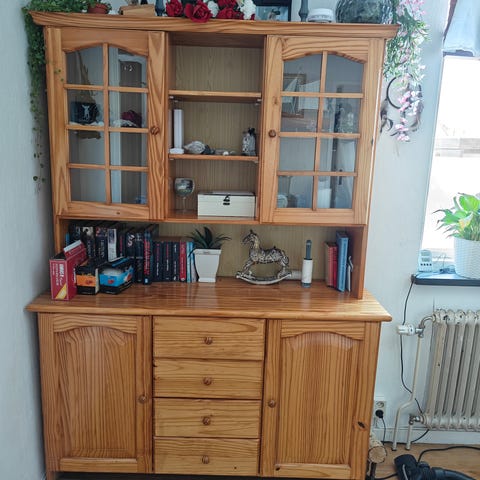Blåmålad (Dalablå) skänkvitrin / vitrinskåp i mycket fint skick.