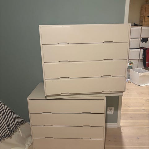 Wheeled spacious storage space, lots of drawers, organized for work or clothes.