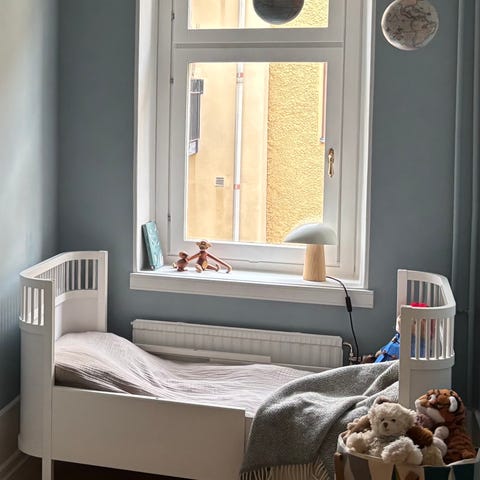 Sängen är använd under ett par år och det finns mindre färgskav (se bild) på sina ställen. Generellt i bra skick.