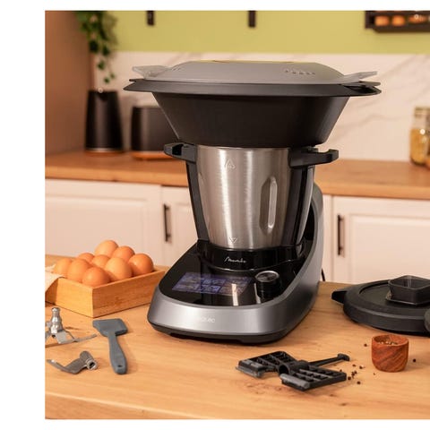 Monsieur Cuisine Connect är en multifunktions-köksmaskin med 800 W motor, 1000 W uppvärmning, 3 L rostfri skål, inbyggd våg upp till 5 kg, 10 hastigheter (inklusive turbo) och temperaturintervall 37-130 °C, styrd via 7" pekskärm med Wi-Fi och guidat "CookingPilot"-läge för recept.