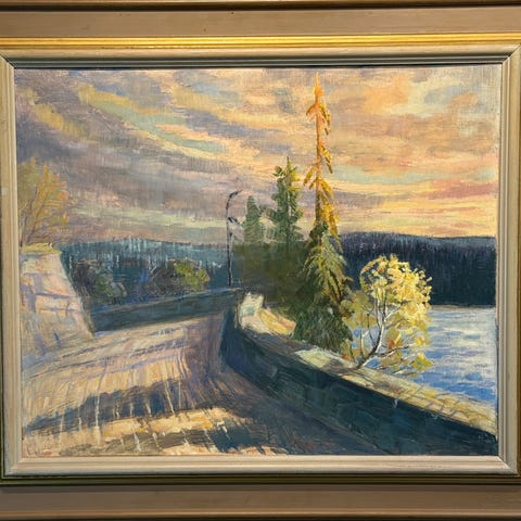 Olja på duk av Carl Atterhult 1965. Ram finns men har lossnat.
