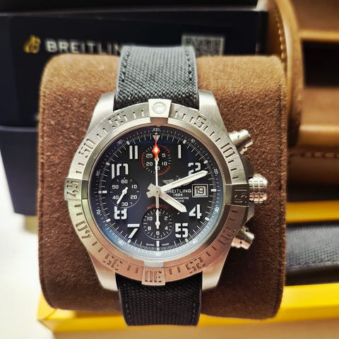 Breitling Endurance Pro herrklocka med svart urtavla och tydliga vita index och siffror. Klockan har kronograffunktion, datumvisning och roterande bezel med kompassmarkeringar. Boetten är i mörk komposit med skruvad baksida. Svart gummiarmband med spänne märkt Breitling. Lämplig som sport- och vardagsklocka för herr.