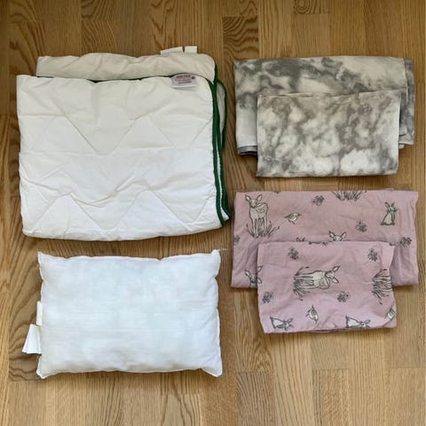 Paket med bäddtillbehör till spjälsäng inkl täcke och kudde