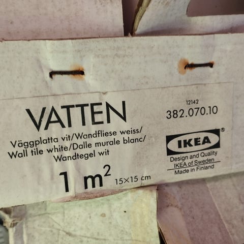 Kakelplattor för vägg i beige ton. Rektangulära plattor med blank yta och diskret mönstring. Passar exempelvis badrum eller kök som väggbeklädnad. Kan kombineras med dekorlist eller bård som på bilderna, beroende på önskad utformning. Mått 33x46 cm , 70 st plattor räcker till ca 11 kvm. Helt nya!