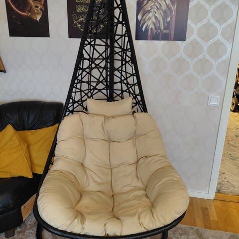 IKEA gungstol i vit färg. Är för både inom- och utomhusbruk. Har enbart stått som "prydnad" i ett sovrum, så är i mycketfint skick. Stolen har hög rygg och sits i flätad konstruktion samt medar som gör att den gungar fram och tillbaka. Passar som sittmöbel i vardagsrum, sovrum eller läshörna eller i trädgården. Mått enligt bild: bredd ca 65 cm, djup ca 96 cm och höjd ca 103 cm.