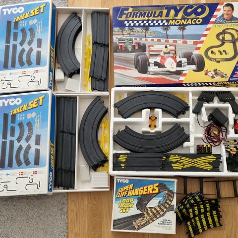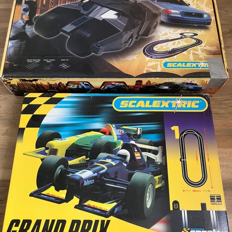 Säljer en analog Scalextric bilbana. Bandelar, transformator och handtag fungerar, men dom 4 bilarna är mer eller mindre slut. Torra däck, någon har slirande kugghjul, några med sprucken plastdel m.m.