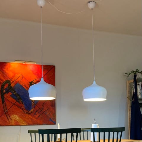 TAKLAMPOR, 2 st, Designtorget, vit plåt, höjd 25 cm, diameter 24 cm.