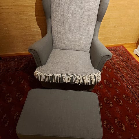 Strandmon fåtölj från IKEA med tillhörande fotpall