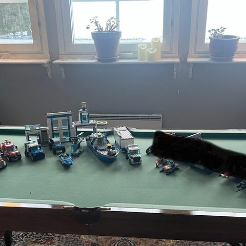 Lego City byggset. Innehåller helikopter, mindre byggnad, fordon, minifigurer. Nr 60173. Skans en minifigur (en björn).