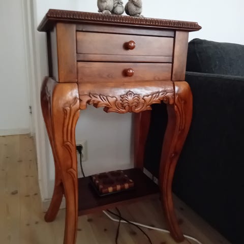 Sidobord i trä med glasskiva