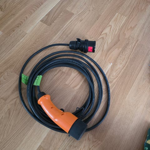 Laddkabel för elbil med integrerad kontrollbox. Kabeln har flera olika kontakter/adaptrar för anslutning till olika uttag. Medföljande förvaringsväska underlättar transport och förvaring. Lämplig för hemmaladdning eller laddning på platser med kompatibla uttag. Märke: Khons EVSE 11 kW med 3fas uttag och 2-fas adapter.
