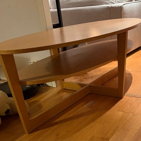 Soffbord från Mio i ett bra skick. Underdel i massiv ek och glasskiva som bordsdel. Bordet är i bra skick men bär spår av användning.