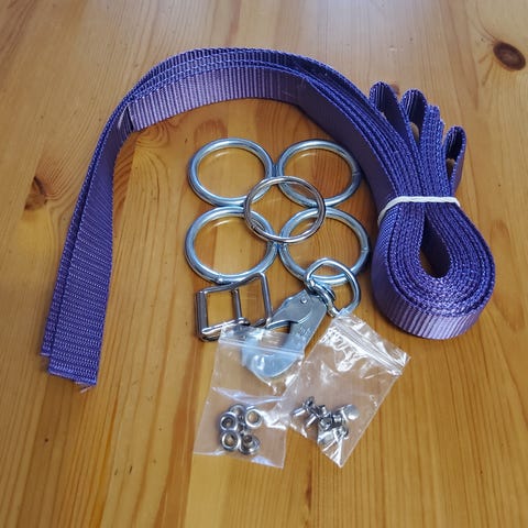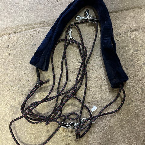Longerlina för häst, aldrig använd. längd 8 meter. Färg grön med inslag av andra färger. Utrustad med hake för fastsättning i grimma eller träns. Passar för longering och arbete från marken.