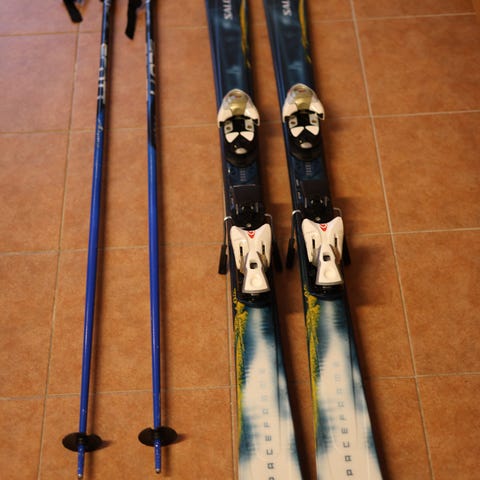 Fischer alpinskidor med längd 166 cm. Skidorna är blå med svarta belag och är utrustade med Fischer-bindningar i svart och rött. Passar för piståkning men klarar uppkörda backar och lössnö väl.