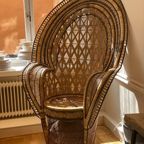 Härlig soffa med "tak" som går att ta av. Passar utmärkt i uterum eller liknande. Vi har lagt i en extra tjock madrass med ett lakan från HM över, för extra komfort, detta skickar vi gärna med. Kuddar ingår ej. Möbeln är i fint skick och har alltid förvarats inomhus. Hund finns i hemmet.