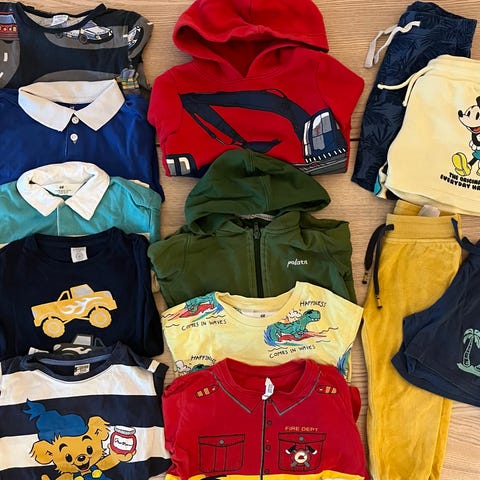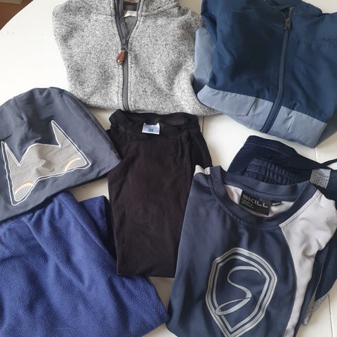 10 t-shirt, 4 långärmade tunnare tröjor, 2 mjukisbyxor