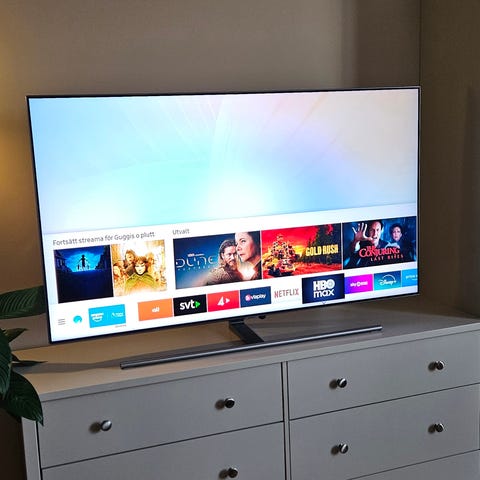 Smart-Tv i jättefint skick, varsamt använd. Har stått i pensionärshem. Storlek 55 tum (höjd 70 cm, bredd 123. cm). Fjärrkontroll medföljer. Nypris cirka 12 000.