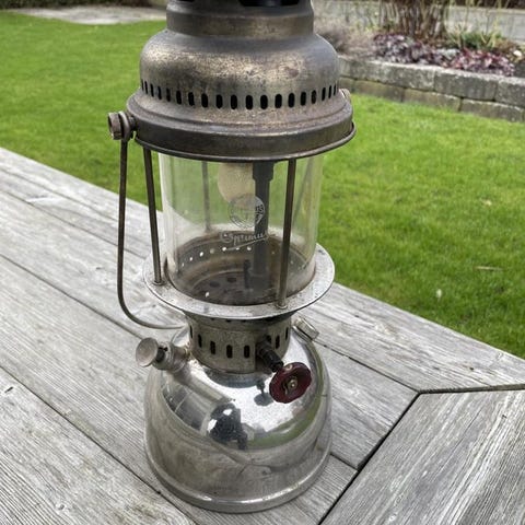 Detta är en Radius LtD No 103, 300 C.P stormlykta, tillverkad i Sverige.