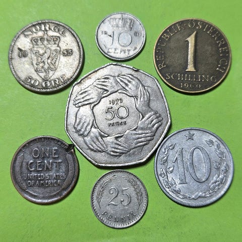 Samling av utländska mynt, 305 g