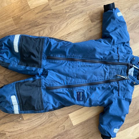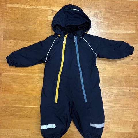 Polarn O. Pyret vinteroverall för barn i storlek 80. Overall i blå färg, tillverkad i polyamid. Modellen är unisex och har avtagbar huva, långa ärmar och långa ben. Utrustad med reflexdetaljer, en ficka på framsidan. och resår vid benslut med fotremmar. Passar för barn cirka 9–12 månader, beroende på barnets längd.