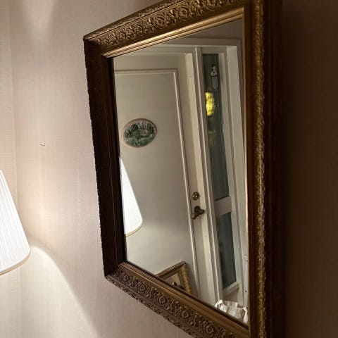 Guldspegel från H&M Home. Kvadratisk spegel med cirkamått 36x36 cm.