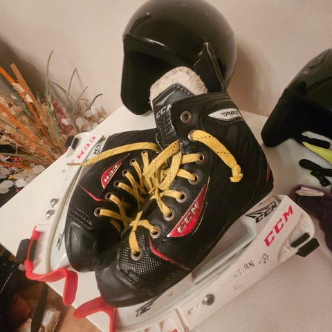 CCM hockeyhjälm junior svart med galler. Hjälmen har justerbar passform och är utrustad med metallgaller framtill för ansiktsskydd. Ventilationsöppningar i skalet och vadderad insida för komfort. Avsedd för ishockey eller skridskoåkning där ansiktsskydd krävs.