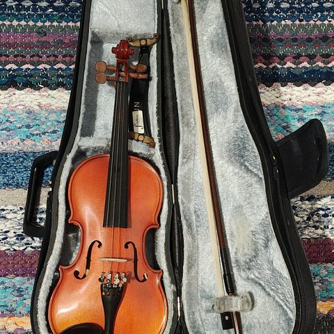 Notera att E-strängen saknas och behöver ersättas, men i övrigt har fiolen en mycket fin klang. Ett bra instrument för såväl nybörjare som den lite mer vana spelaren