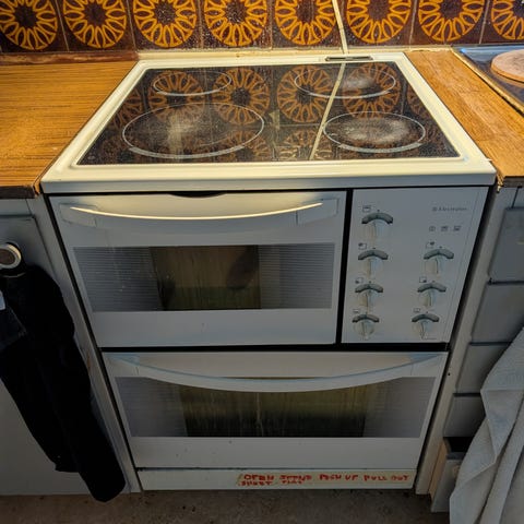 Bänkspis med två kokplattor och inbyggd ugn. Utförande i vit färg med vred på sidan för inställning av värme och ugnsfunktioner. Passar för placering på bänk i mindre kök, fritidshus eller liknande utrymmen där en kompakt spislösning behövs.