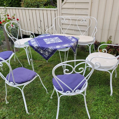 Utemöbelset från Venture Design bestående av runt matbord och 4 lätt gungbara och sköna stolar i mycket bra skick.