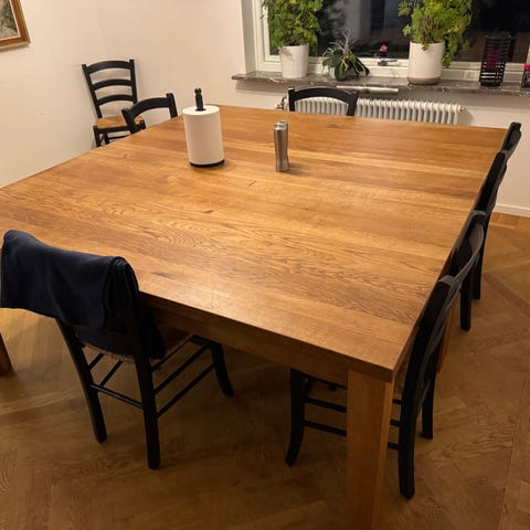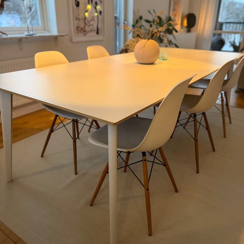 Matbordet säljs utan stolar och hämtas som tidigast den 20 mars och som senast den 26 mars.